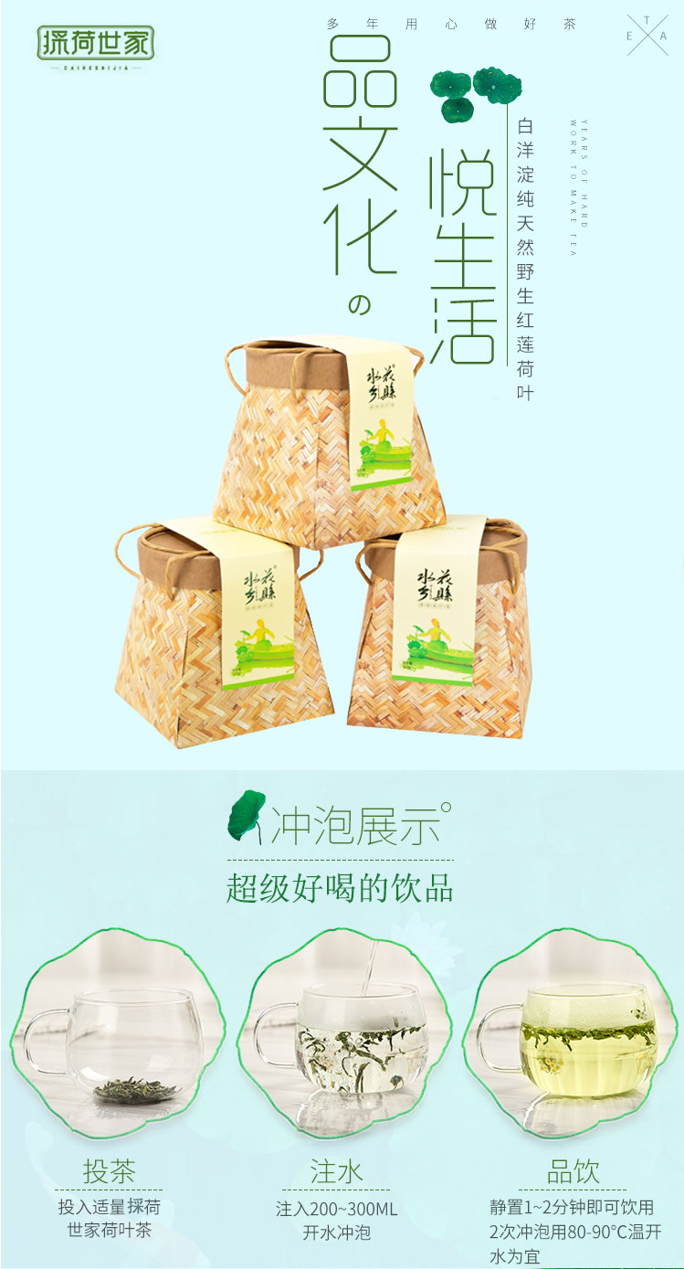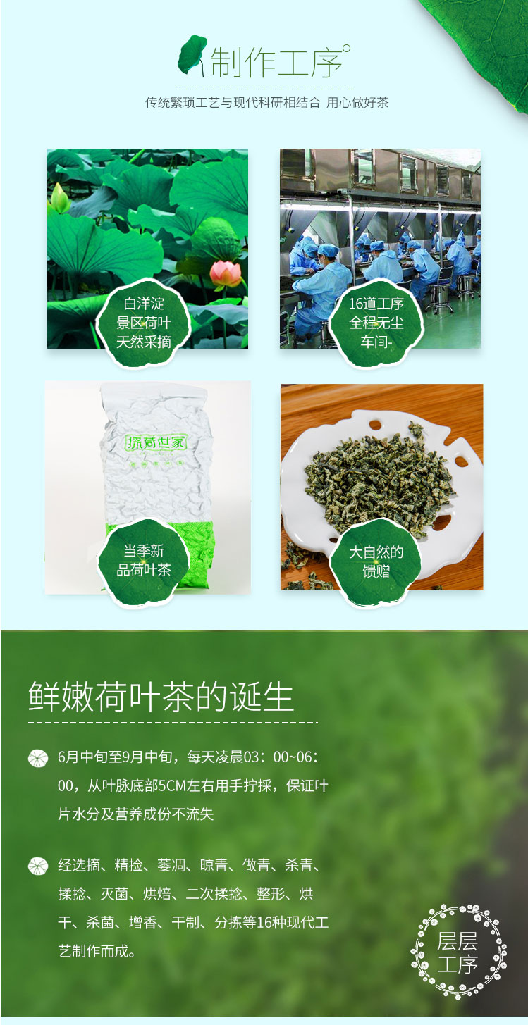 白洋淀特产级野生红莲嫩纯干荷叶茶16道工艺烘焙古法茗香礼盒正品