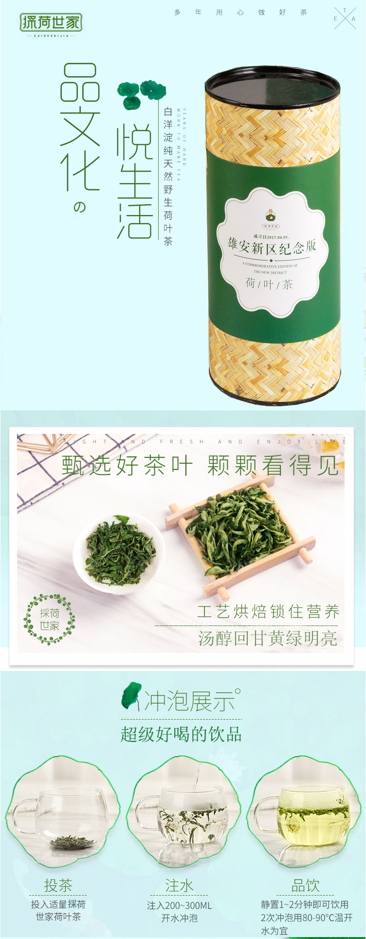 採荷世家雄安野生红莲纯干荷叶茶天然正品纪念版-圆桶(70g*2)